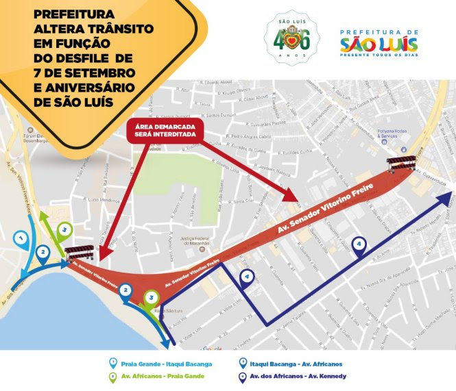 Prefeitura altera trânsito em função do desfile de 7 de setembro e aniversário de São Luís